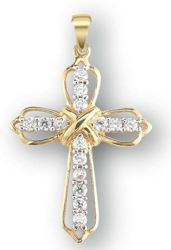1" Gold Over Sterling Silver Crystal Zircon Cross Pendant ~ Gold over sterling silver crystal zircon cross pendant comes on an 18" gold plated chain and presents in a deluxe velour gift box.