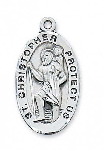Sterling Silver St. Christopher Medal with 24" stainless steel chain.